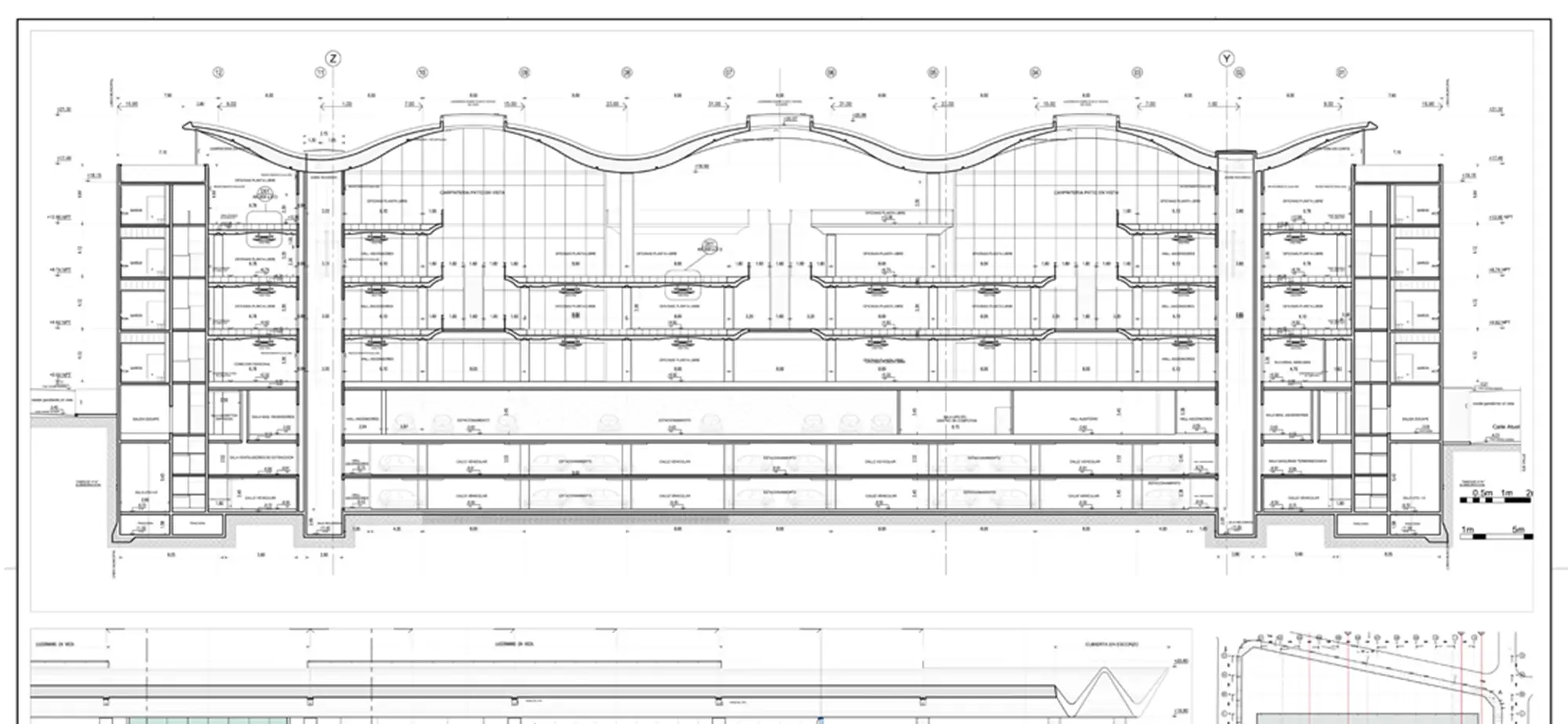 Documentation management of glass facades, internal yards, skylights and auditorium; metallic and concrete brisoleils, wooden coatings and HVAC facilities (up to 50 people). Documentation of high-cut concrete-seen structure: vertical circulations, stairs, floors and the unique ondulated roof. Architecture, structure and formworks details. Area +430k sqf. Years: 2011 to 2013.
