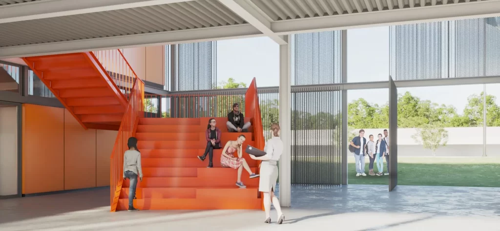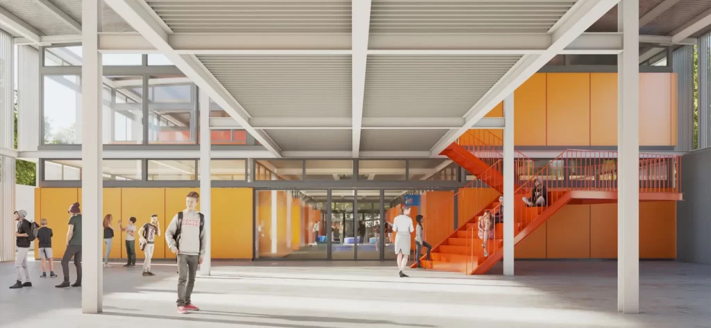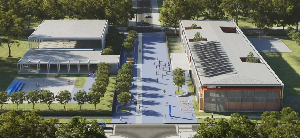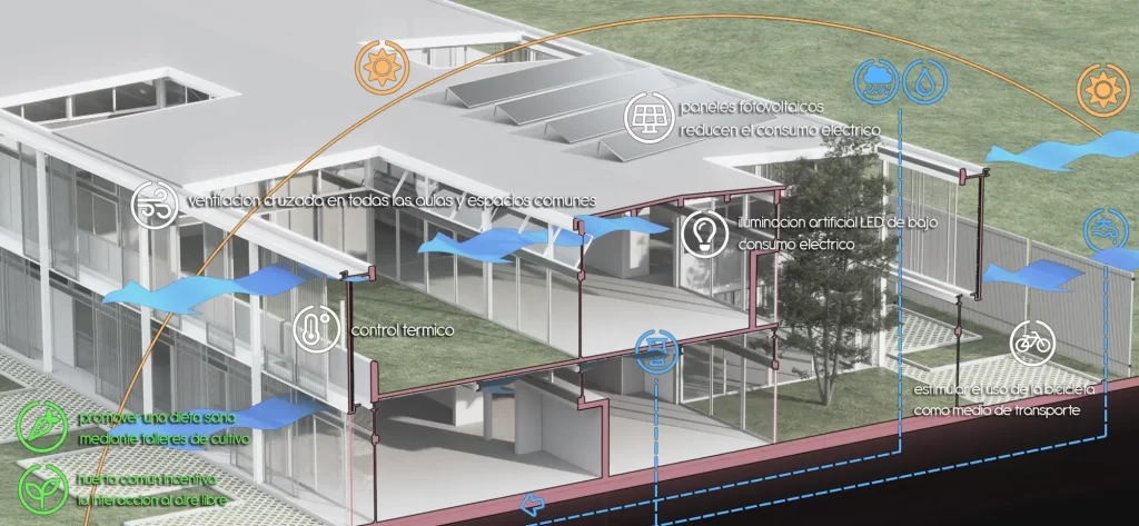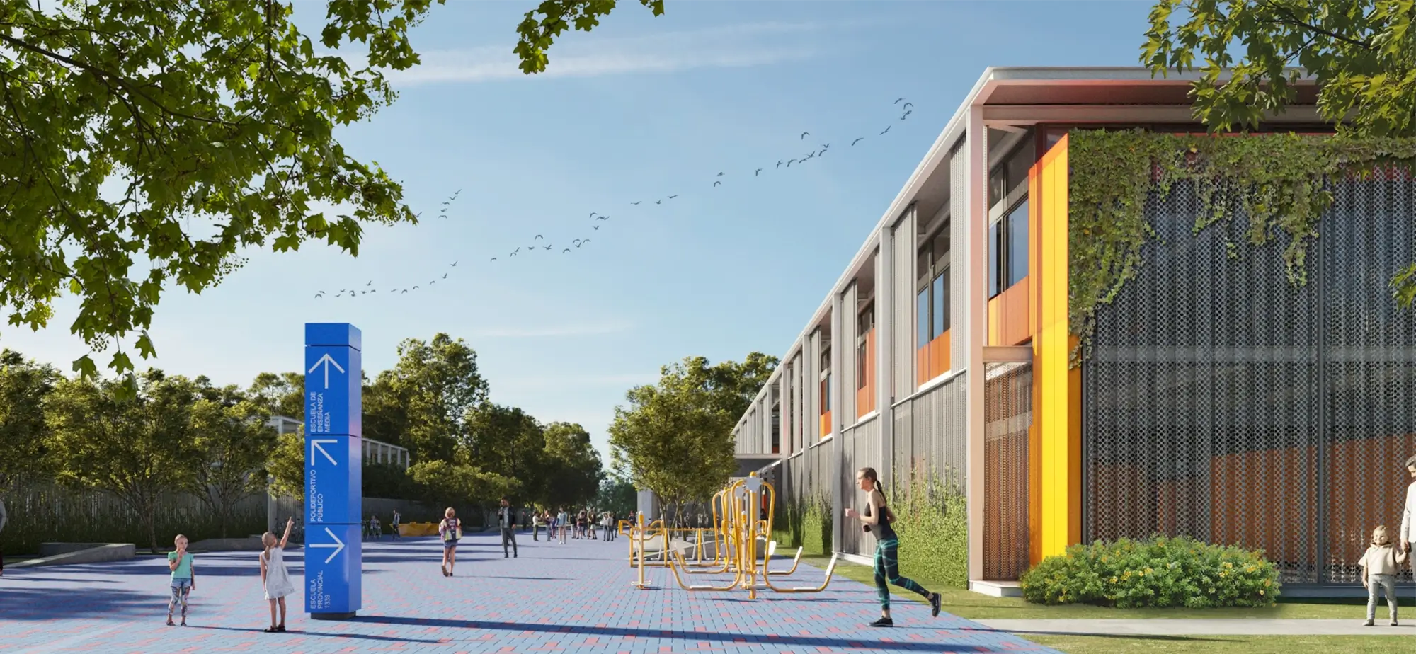ROLDAN SECONDARY SCHOOL First “Covid-19 Post-Pandemic” features for this secondary educational and sport building, new from scratch, including urban enviroment design. Year: 2021