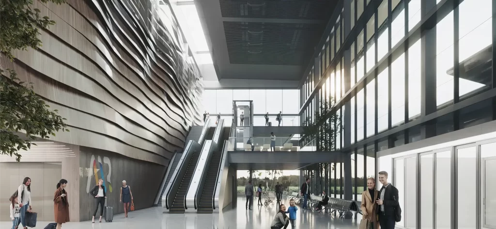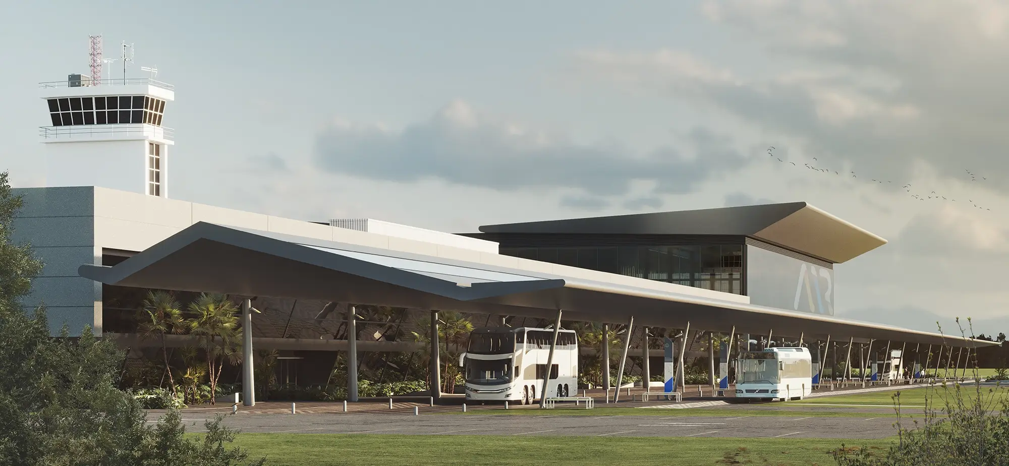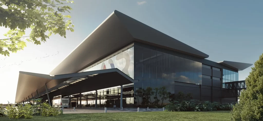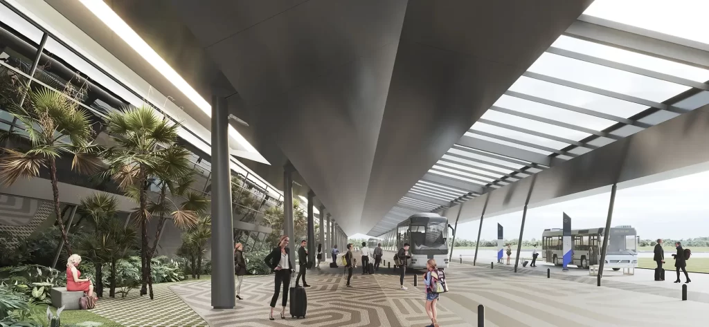 ROSARIO INTERNATIONAL AIRPORT New International Terminal redesign, including roof, facades, main and boarding halles architecture, and overall interior design. New Airport access & pedestrian and vehicular circulations layout. Year: 2021